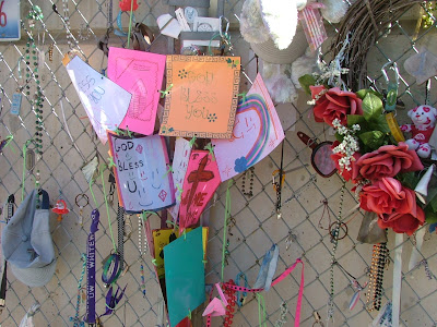 The wall along the street became spontaneously a repository for mementos of the people who died there.